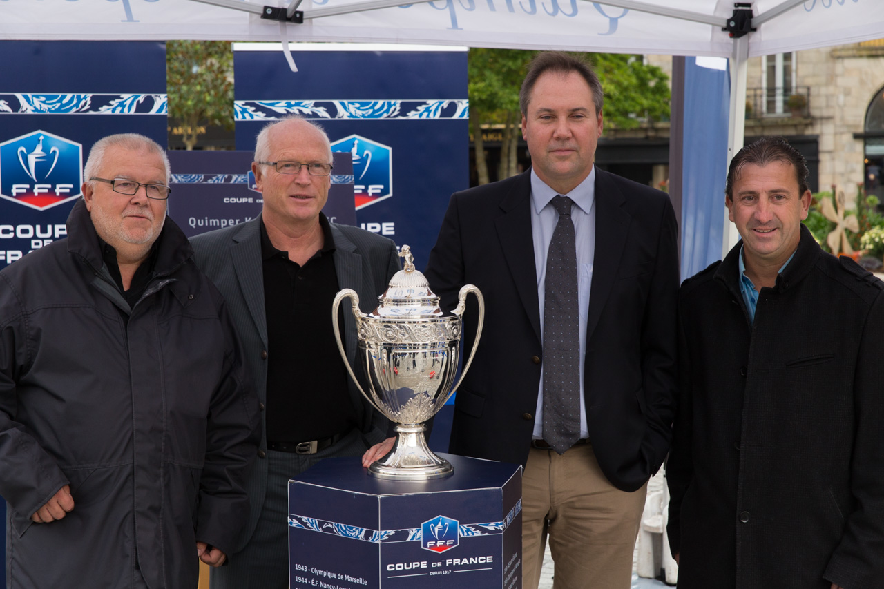 La veille du match, la Coupe de France était exposée place Saint-Corentin, l’occasion pour les Quimpérois de se faire photographier avec le trophée.