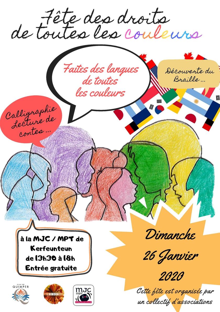 Fête des droits de toutes les couleurs 2020La Fête des droits de toutes les couleurs est un événement gratuit est ouvert à tous. Festive et familiale, la Fête réunit une vingtaine d’associations qui proposeront un programme riche et varié autour du thème : « Faites des langues de toutes les couleurs ».